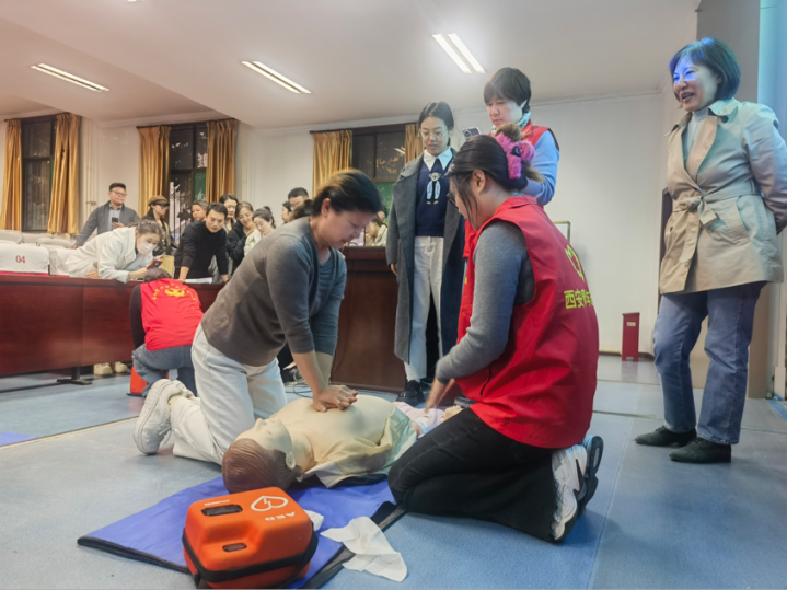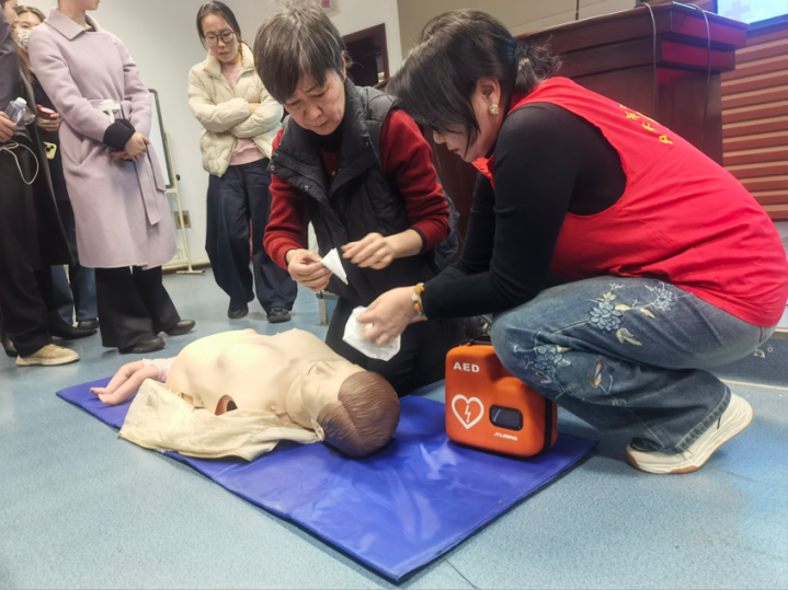 培训采用“理论讲解+实操演练”的立体教学模式,聚焦核心急救技能展开。魏文强导师详细拆解了心肺复苏术(CPR)的按压位置、深度(5-6厘米)、频率(每分钟100-120次)等关键指标,演示了海姆立克急救法针对成人的操作要领,同时解答了“急救时是否需要先拨打120”“按压力度如何把控”等常见疑问,还纠正了“烫伤涂牙膏”等急救误区,从急救基础知识、内科急症、创伤急症、实践操作五个方面,让专业知识更易被理解掌握。